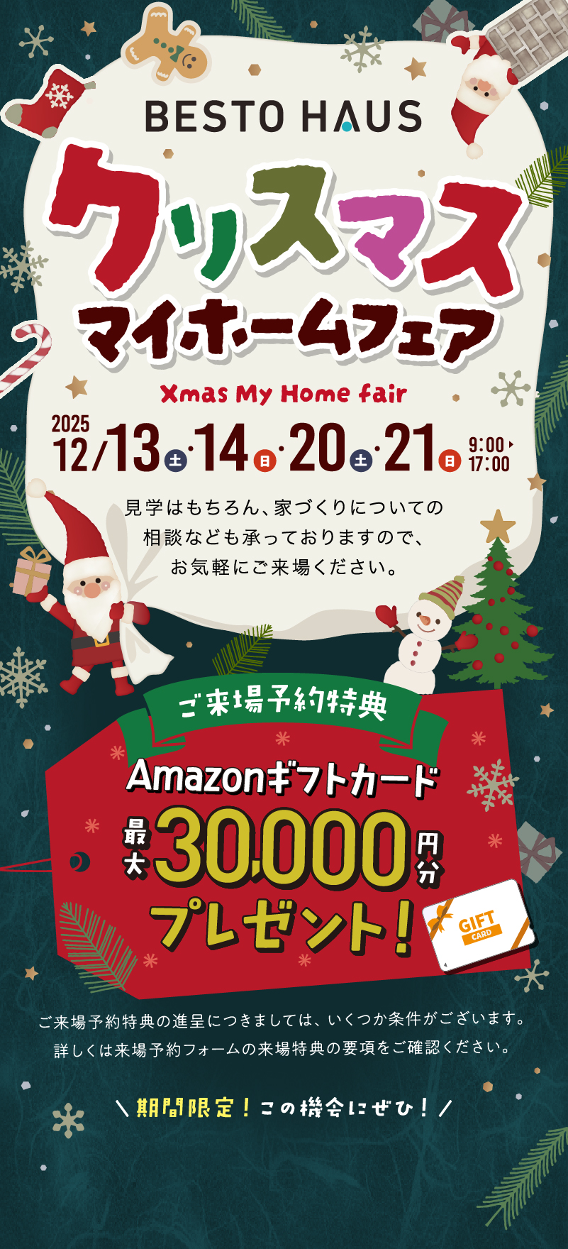 ✔予約フォームからご予約の上、お住まい予定の世帯全員での来場、来場時身分証提示、事前アンケート実施、来店後アンケート実施でAmazonギフト10,000円
