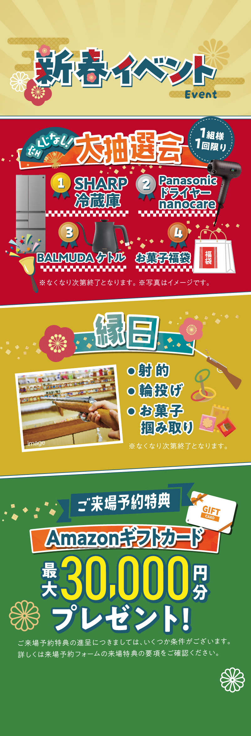 ✔【ご来場特典】につきましては、次回ご来場後にまとめて進呈させていただきます。